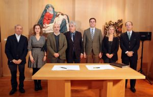 Ayer, 10 de diciembre, tuvo lugar en el Museo de las Ferias el acto oficial de la firma de un acuerdo de colaboración entre la Fundación Las Edades del Hombre y nuestra Institución, para la realización de actividades vinculadas a la promoción, conservación y difusión del patrimonio cultural de Castilla y León. Intervinieron en el acto José Enrique Martín Lozano, secretario general de la Fundación Las Edades del Hombre; Juan Carlos Prieto Vielba, director general de Patrimonio Cultural de la Junta de Castilla y León, y Guzmán Gómez Alonso, presidente de la Fundación Museo de las Ferias y alcalde de Medina del Campo. También fue presentada la ampliación del taller de restauración del museo, actuación integrada en el “Proyecto de renovación integral del Museo de las Ferias – Archivo Simón Ruiz”, financiado con fondos provenientes de los “Proyectos de gestión de bienes del Patrimonio Cultural de Castilla y León” auspiciados por la Consejería de Cultura, Turismo y Deporte de la Junta de Castilla y León. |