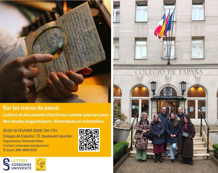 El pasado jueves 19 de febrero se celebró en el Colegio de España en Paris (Ciudad Universitaria) la Jornada de estudios “Tras las huellas del pasado. Cartas y documentación de archivo como fuentes para estudios lingüísticos, históricos y culturales”, organizado por la Universidad de París La Sorbonne y coordinado por Emanuela Masi. Intervinieron en ella profesores de dicha universidad y de las de Sevilla, Ca’ Foscari de Venecia y París 8. Por nuestra Fundación participó su director, Antonio Sánchez del Barrio, quien dio a conocer los valores multidisciplinares del Archivo Simón Ruiz y los proyectos documentales en curso.