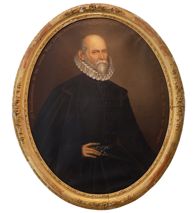 En la figura de Simón Ruiz se encarnan las características descritas en los dos capítulos anteriores ya que se reúnen en su persona: primero, el comerciante que se inicia en la compraventa de mercancías y, pocas décadas después, el destacado hombre de negocios con intereses en toda Europa y América, que llega a realizar préstamos a la Corona. Nace en 1525 en Belorado (Burgos) y se establece en Medina del Campo hacia 1550 como mercader de paños, comerciando al por mayor con géneros de importación procedentes de Nantes y toda la Bretaña francesa, logrando una considerable fortuna que le permite iniciar una segunda etapa profesional orientada a las finanzas. Desde 1593 se dedica casi exclusivamente a la construcción de un gran hospital, su postrera obra de mecenazgo. Con rango de Hospital General, en él van a integrarse la veintena de albergues y hospitales existentes. Se edifica entre 1592 y 1619 según el proyecto del jesuita fray Juan de Tolosa y en su traza queda patente la influencia de los modelos clasicistas de la tratadística italiana, la vinculación a los arquetipos arquitectónicos de la Contrarreforma (sobre todo los del llamado “estilo jesuítico”) y la presencia cercana y poderosa de El Escorial.