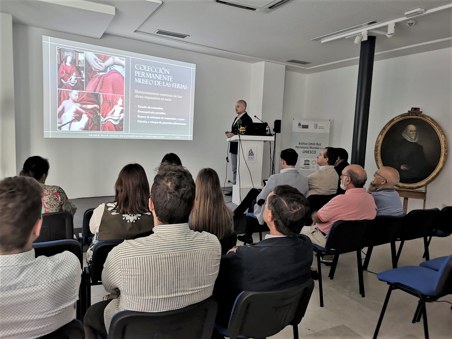 Esta mañana ha sido presentado este primer plan anual que comprende más de una veintena de intervenciones, previstas a lo largo del año en obras artísticas pertenecientes a las colecciones del museo, en bienes muebles de la Fundación Simón Ruiz y en varias obras pictóricas del patrimonio histórico-artístico de Medina del Campo. Destacan las restauraciones que se harán de la escultura de San Miguel Arcángel (Anónimo flamenco, h. 1500) y del lienzo de San Antolín (Manuel Peti, h.1698) enclavado en la sacristía de la Colegiata. Esta última actuación se realiza en el contexto del 150 aniversario de la creación de las ferias y fiestas mayores dedicadas al santo patrón de la villa. Las labores de restauración correrán a cargo de Francisco Boldo Pascua, conservador restaurador de la Fundación. Mäs información en https://www.museoferias.net/wp-content/uploads/2023/06/Plan-_Conservacion_2023zip.pdf |
