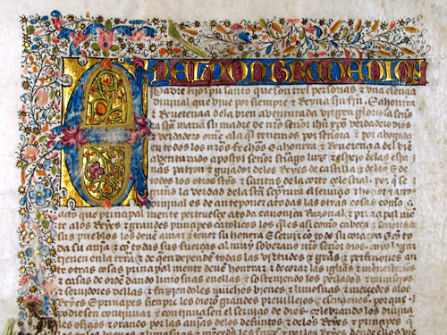 Entre los muros de nuestros monasterios se conservan conjuntos documentales de singular interés histórico, que apenas son conocidos más allá de las propias clausuras o de los ámbitos académicos de los historiadores. El Archivo del Monasterio de Santa Clara de Medina del Campo es uno de ellos y, por esta razón, la Comunidad de MM. Clarisas y la Fundación Museo de las Ferias han suscrito un convenio de colaboración para inventariar, digitalizar, estudiar, restaurar, conservar y exponer este patrimonio documental. El proyecto se llevará a cabo a lo largo de 2010 y antes de darlo inicio se ha querido que la primera actuación sea una pequeña muestra temporal, en la que se expongan los principales documentos tal cual han llegado hasta nosotros, después de sortear los contratiempos de una larga historia varias veces centenaria. El manuscrito más antiguo es de 1314, año en que está fechada una Carta Real de Alfonso XI que confirma documentos anteriores que se remontan al reinado de Alfonso X el Sabio, unos tiempos muy cercanos a los de la fundación del Monasterio, en el segundo cuarto del siglo XIII. La mayoría de los fondos expuestos están fechados en el siglo XV y son cartas de privilegio, de juros, de donaciones, bulas, etc. correspondientes a los reinados de Juan II, Enrique IV y Reyes Católicos. Entre ellas cabe destacar dos cédulas reales que presentan la firma autógrafa de la Reina Isabel y que ahora se ofrecen en primicia. Otros documentos manuscritos en pergamino aún conservan los sellos originales de plomo, de placa o de cera roja. Todos ellos se muestran junto a las más antiguas e interesantes obras de arte conservadas en el monasterio, excepción hecha del monumental crucificado gótico que preside la iglesia del convento y el lienzo de Ntra. Señora de la Antigua que expusimos en el Museo durante los pasados meses de verano. Así, pueden contemplarse: un pequeño Crucificado de comienzos del siglo XVI, prototipo de la estética del primer renacimiento castellano; un relieve con el tema de la Imposición de la casulla a San Ildefonso y una escultura de la Asunción, ambos pertenecientes al desaparecido retablo mayor de la iglesia conventual; la cruz procesional del monasterio, una sorprendente naveta compuesta con un caracol marino, una cruz relicario y una campana del siglo XV con inscripciones góticas.
