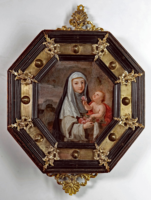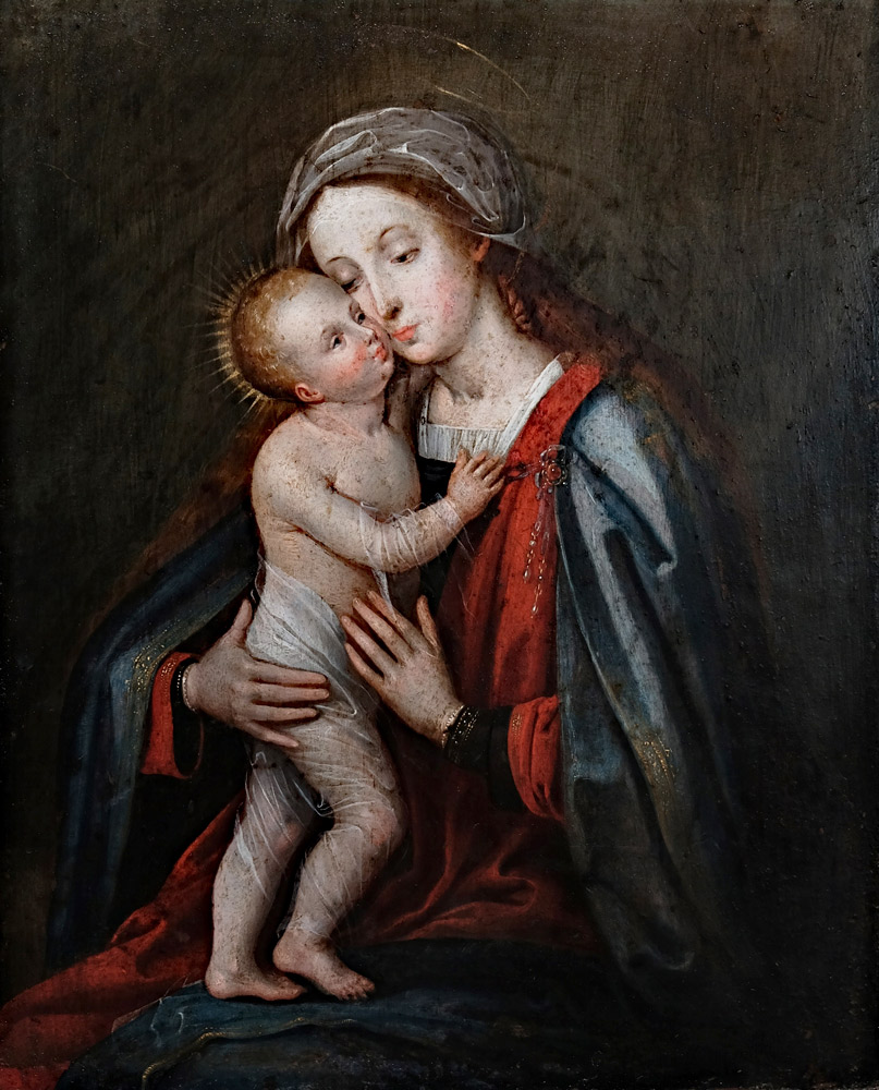 La celebración del ciclo de la Navidad constituye uno de los momentos más relevantes del calendario conventual femenino, marcado por el recogimiento y la contemplación del misterio de la Encarnación. En el monasterio de San José de Carmelitas Descalzas de Medina del Campo, la figura iconográfica de la Virgen con el Niño ha ocupado tradicionalmente un lugar central en la oración y la vida cotidiana de la comunidad. De esa arraigada devoción dan testimonio las diversas representaciones conservadas en el convento, entre ellas las aquí reunidas –una pintura sobre lienzo y tres sobre cobre–, cuyo reducido formato revela su destino al culto privado dentro de los espacios más íntimos de la clausura. La representación más antigua del conjunto, donada por D. Balthasar Picazo en fecha indeterminada del siglo XVII, según leemos en el reverso de la enmarcación, corresponde a una pintura inspirada en un modelo perdido de Rogier van der Weyden. Este fue reinterpretado por pintores de la generación siguiente como Adriaen Isenbrandt o Ambrosius Benson, durante la primera mitad del siglo XVI. A partir del referente rogeriano, de notable fortuna visual, se difundieron desde los talleres de Brujas numerosas versiones con variantes compositivas hasta bien entrado el siglo XVII, destinadas a un mercado internacional y susceptibles de ser adquiridas en ferias comerciales como la de Medina del Campo. La pintura al óleo de mayor tamaño, realizada sobre lienzo, es una copia de la Mater Divinae Providentiae que realizara Scipione Pulzone, il Gaetano (1544-1598) hacia 1580. La devoción a esta advocación fue impulsada por los Clérigos Regulares de San Pablo (barnabitas), que la adoptaron como figura protectora de la orden. El lienzo original se encontraba en la capilla privada de la residencia de la comunidad religiosa, anexa a la iglesia de San Carlo ai Catinari de Roma. Pronto adquirió gran devoción y difusión, propiciando la realización de numerosas copias dispersas por todo el mundo, como el ejemplo que aquí se muestra. Por último, los dos pequeños cobres enmarcados de forma similar —una Virgen con el Niño y Santa Rosa de Lima con el Niño Jesús— son obras italianas populares del siglo XVII (quizá de taller toscano), en las que destacan sus marcos ochavados en madera ebonizada, con aplicaciones en bronce y cobre sobredorado. Este tipo de encuadre, de marcado carácter preciosista y ornamental, no solo cumple una función protectora y estética, sino que también actúa como envoltorio sagrado, motivo por el cual se conocen como marcos-relicario. El conjunto refleja la recepción, en el ámbito conventual femenino, de modelos pictóricos de amplio alcance internacional, en los que confluyen las corrientes flamenca e italiana, testimoniando la pervivencia y renovación de la iconografía mariana en el tránsito del Renacimiento al Barroco. Francisco José Boldo Pascua BIBLIOGRAFÍA ARIAS MARTÍNEZ, M., HERNÁNDEZ REDONDO, J. I. y SÁNCHEZ DEL BARRIO, A., Clausuras I. El patrimonio de los conventos de la provincia de Valladolid. I Medina del Campo. Valladolid, Diputación Provincial, 1999, p. 198. DIMOV, A., “Transmisión de modelos y prácticas pictóricas de taller en la pintura brujense del s. XVI. El fragmento rogeriano de ‘La Virgen besada por el NIño’ del Museo Lázaro Galdiano”, Goya, nº 375 abril junio, 2021, pp. 112-113. TIMÓN TIEMBLO, M. P., El marco en España. Del mundo romano al inicio del Modernismo. Madrid, Edit. P.E.A., 2002, pp. 261-262. |