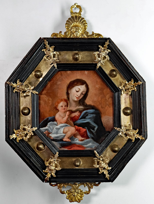 Óleo sobre cobre, marco ebonizado con aplicaciones de bronce y cobre sobredorado / 18 x 17,5 cm