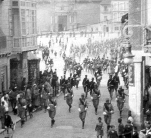 Gracias al rastreo que hemos hecho de varias fotografías de la época, hemos podido comprobar que el quiosco, aunque sigue las indicaciones dictadas por al Ayuntamiento, se realizó finalmente con algunas variantes de diseño ornamental respecto al croquis presentado (véase la fotografía del quiosco, anónima, hacia 1925-1930). Por otra parte, si bien al principio fue instalado al final de la acera de la Joyería, según podemos verlo en el fondo de una fotografía de un acto militar celebrado en la Plaza Mayor, el 6 de abril de 1916 (Honorio Román, Col. Manuel Martínez Hernández) o en otra titulada “Calle de la Rúa” tomada desde el tramo central de esta calle hacia la plaza en 1916 (tarjeta postal circulada el 14 de agosto de 1917), pronto fue trasladado al otro lado de la bocacalle de Padilla, junto al pilar esquinado del inicio de la acera del Peso, como podemos ver en otras fotos más modernas de los años veinte, como en la que aparece un desfile militar entrando en la calle de Padilla desde la Plaza Mayor, fechada el 30 de mayo de 1926; en la ya mencionada del propio quiosco o en los planos generales de la Plaza Mayor tomados desde el ayuntamiento en la película documental “Valladolid en la exposición Ibero-Americana de Sevilla. Año 1929”. Dicho traslado quizá se llevara a cabo en alguna de las reformas que por aquellos años conoció el llamado “boulevard” de la acera de la Joyería, sin duda el paseo callejero más concurrido de la Medina de los años veinte.