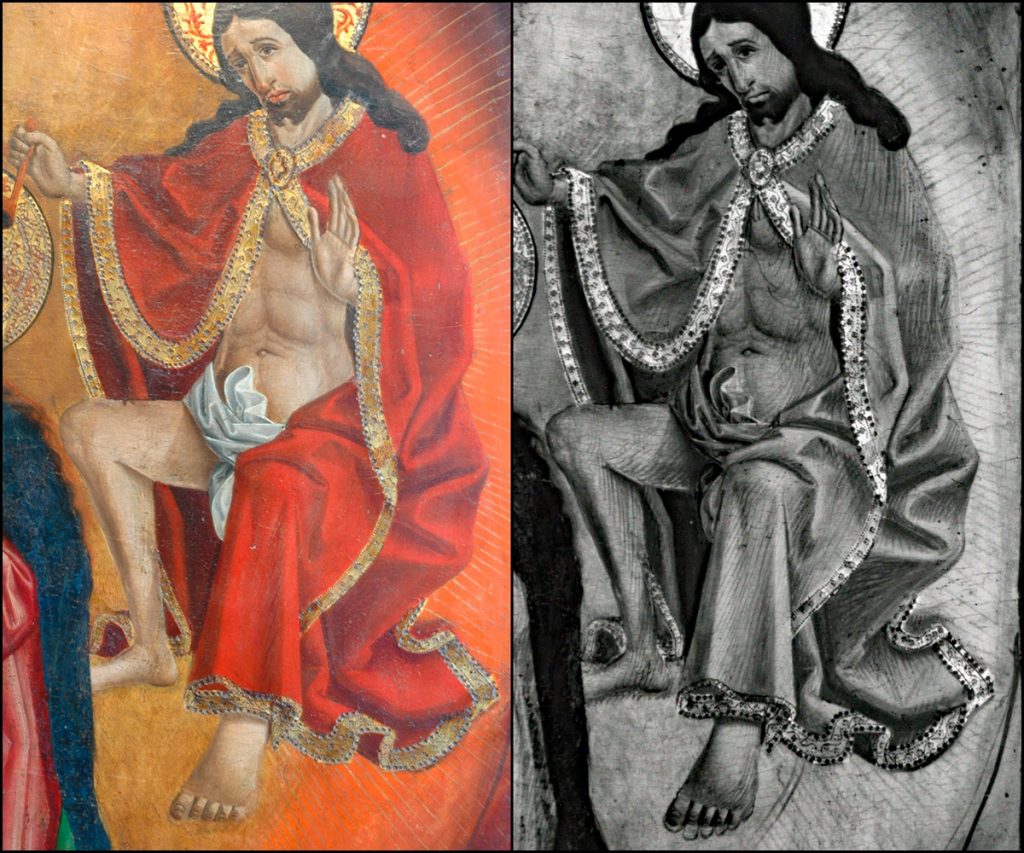 Mediante el uso de cámaras sensibles a la radiación infrarroja, es posible atravesar las capas superficiales de pintura y hacer visible ese primer esbozo, generalmente ejecutado con materiales ricos en carbono. De este modo, accedemos a una fase oculta del proceso creativo que no es perceptible a simple vista.